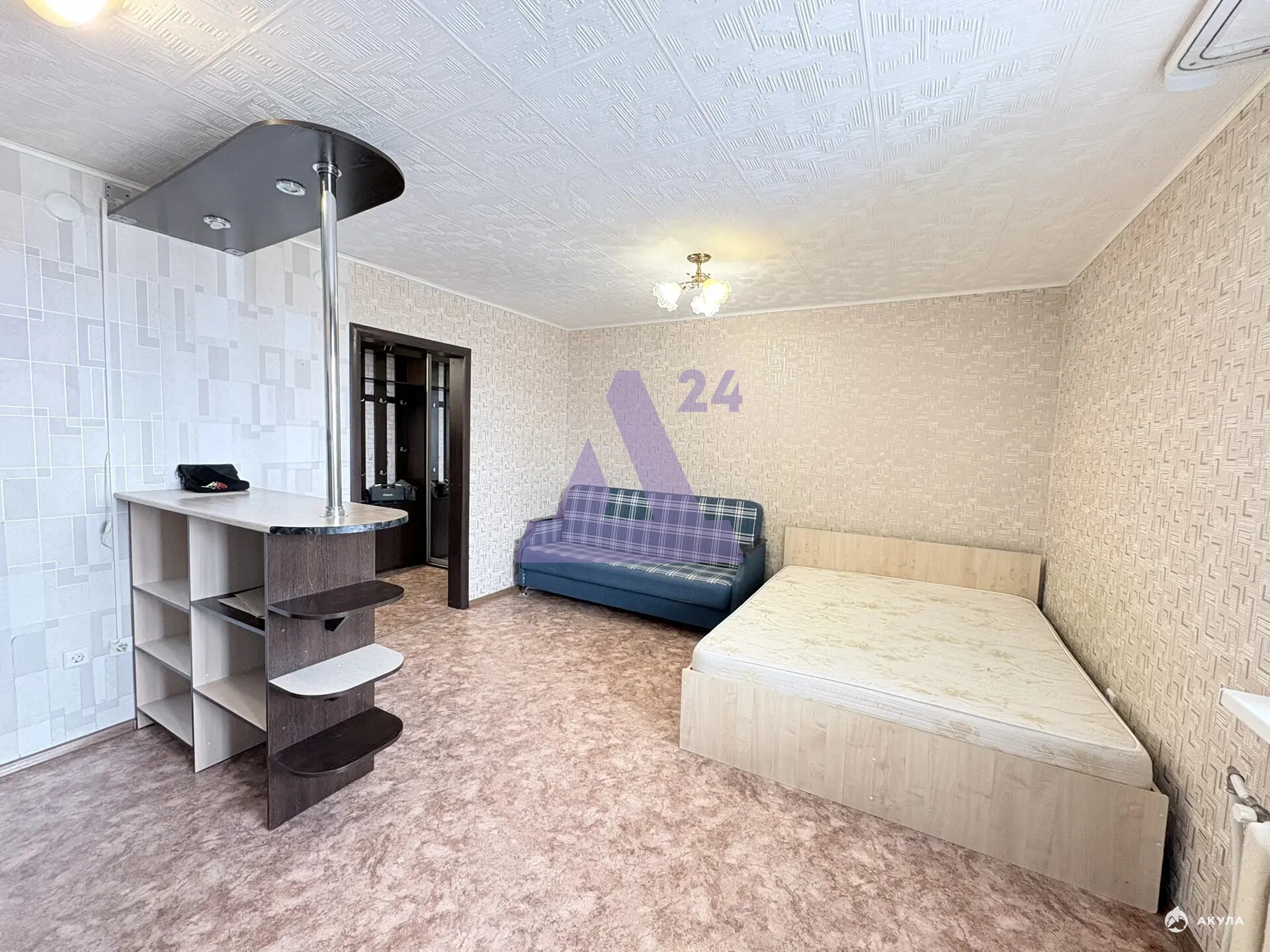 Общая площадь 26, 7 кв.м. Планировка грамотно организована: это студия, в которой удобно зонировать пространство под себя — будь то место для отдыха, работы или приёма гостей.