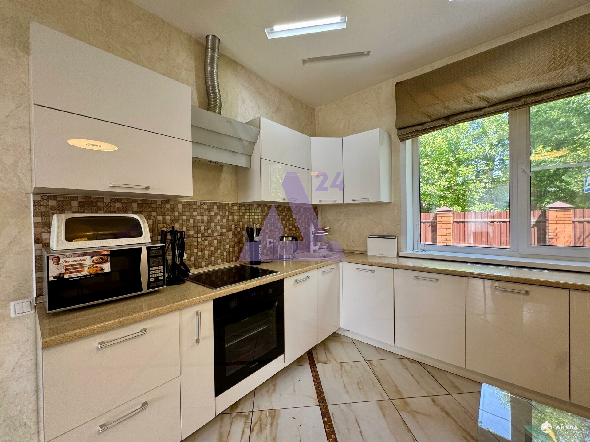В доме просторная кухня-гостиная, 4 спальни, 2 санузла.