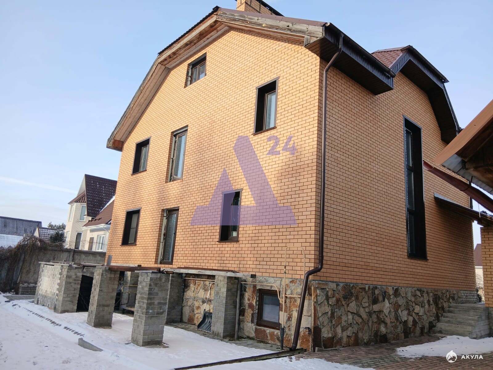 Стены дома выполнены по надёжной схеме — кирпич, газобетон, кирпич. Перекрытия железобетонные, на первом этаже и в подвале установлены тёплые полы. Коммуникации заведены: электричество, вода, газ, отопление. Есть собственная скважина глубиной 100 метров — чистая вода круглый год.