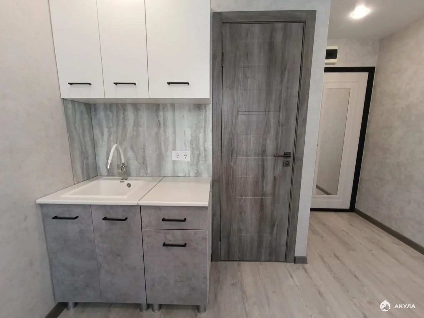 Уютная студия с собственным санузлом. Сделан капитальный ремонт: новая электропроводка, обои, ламинат, натяжной потолок, новая входная дверь с зеркалом, в санузле осуществлена гидроизоляция , новые ванна и унитаз, сделаны выводы под стиральную машину и водонагреватель, установлен электрический полотенцесушитель. Кухонный гарнитур, прихожка.
