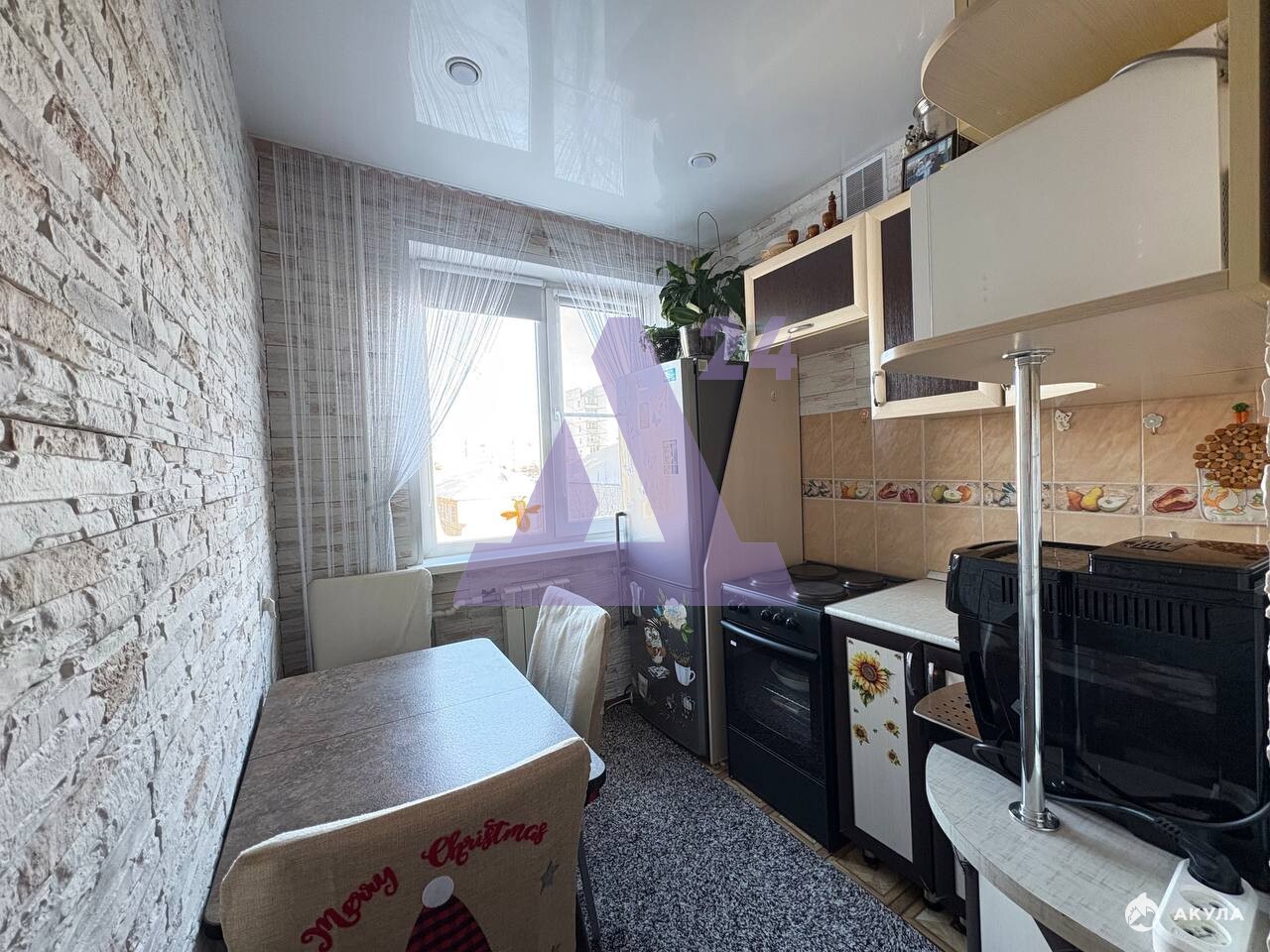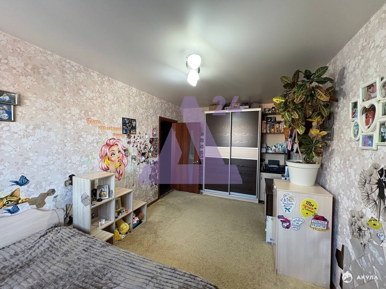 В квартире выполнен аккуратный косметический ремонт: на полу практичный линолеум, установлены пластиковые окна, натяжные потолки, хорошая входная дверь, не требующая замены. Это тот случай, когда можно заехать сразу или без спешки обновить интерьер под себя.