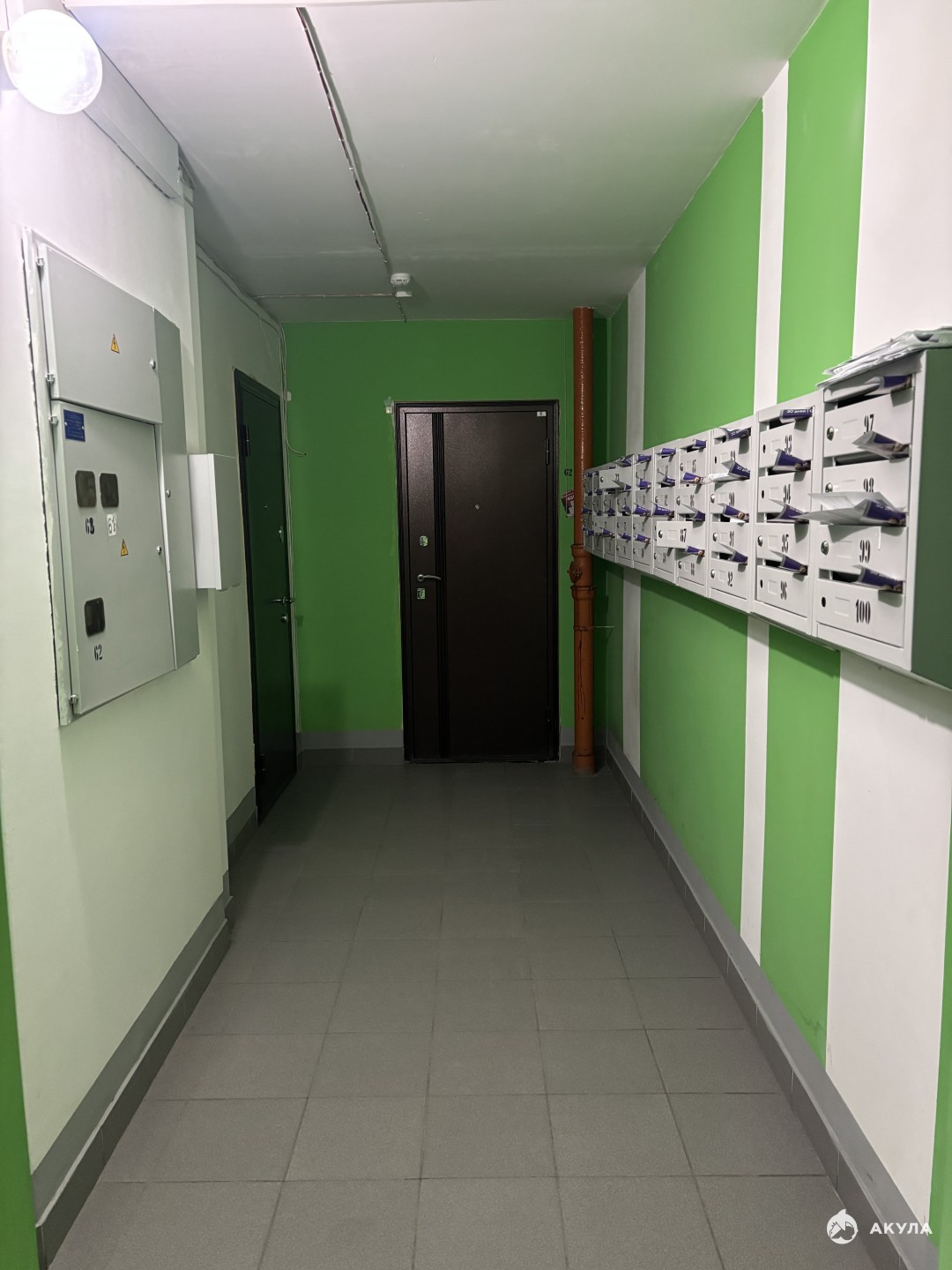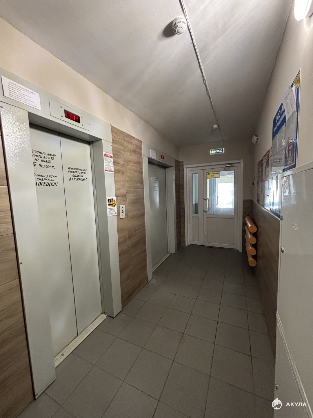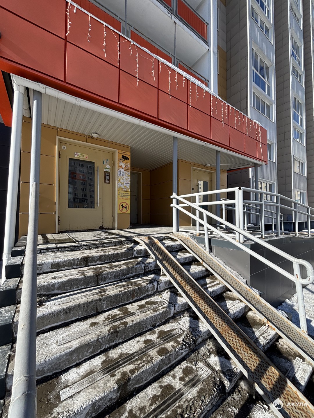 Чистый свежий подъезд, просторный двор перед окнами.