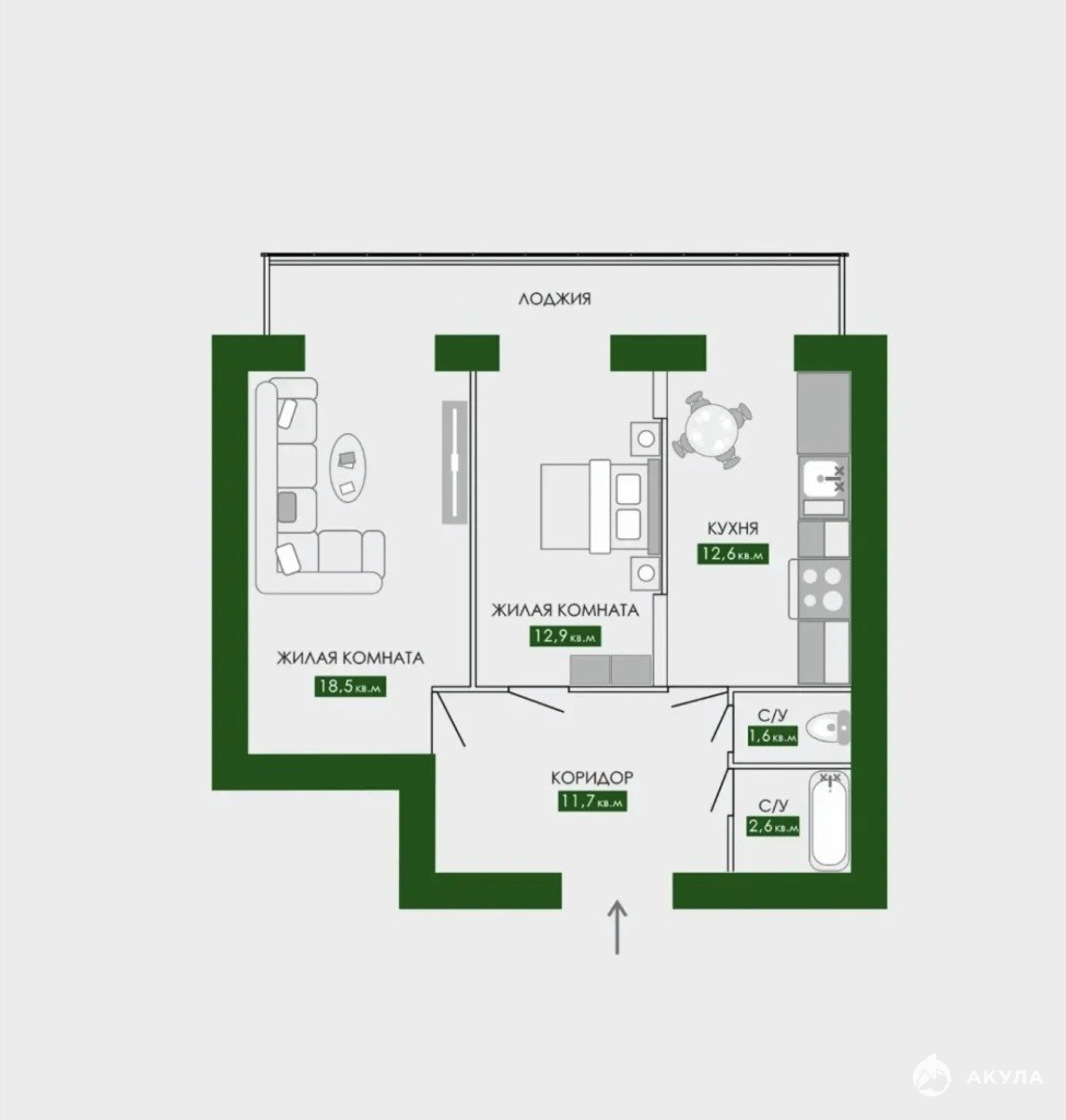 Арт. 93724058. Ваша идеальная двушка в «Временах года»: стены готовы, ремонт — под вашу фантазию!