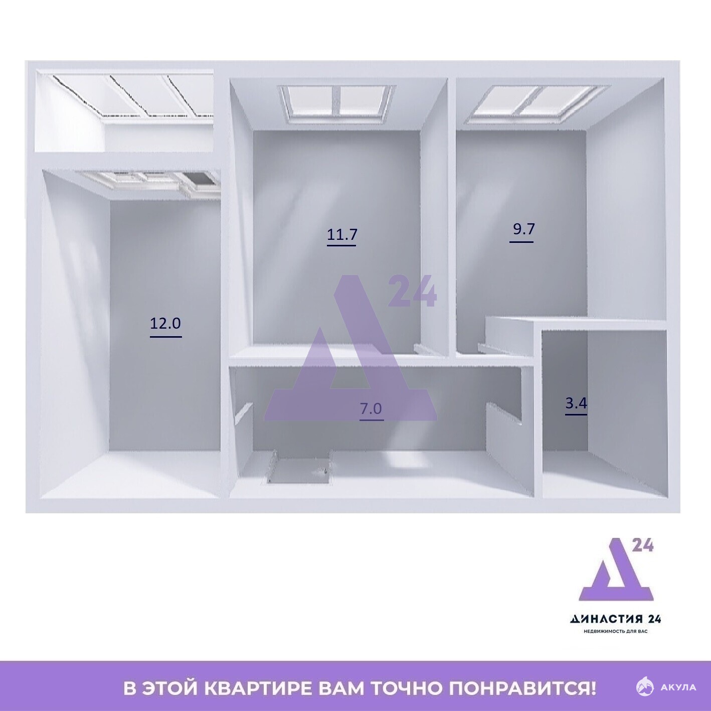 Планировка продуманная и функциональная. Комнаты изолированы, что особенно удобно для семьи. Кухня площадью 9, 7 кв. м позволяет организовать полноценную обеденную зону. Одна из жилых комнат имеет выход на лоджию — дополнительное пространство можно использовать как кабинет, зону отдыха или место для хранения. Санузел совмещённый.