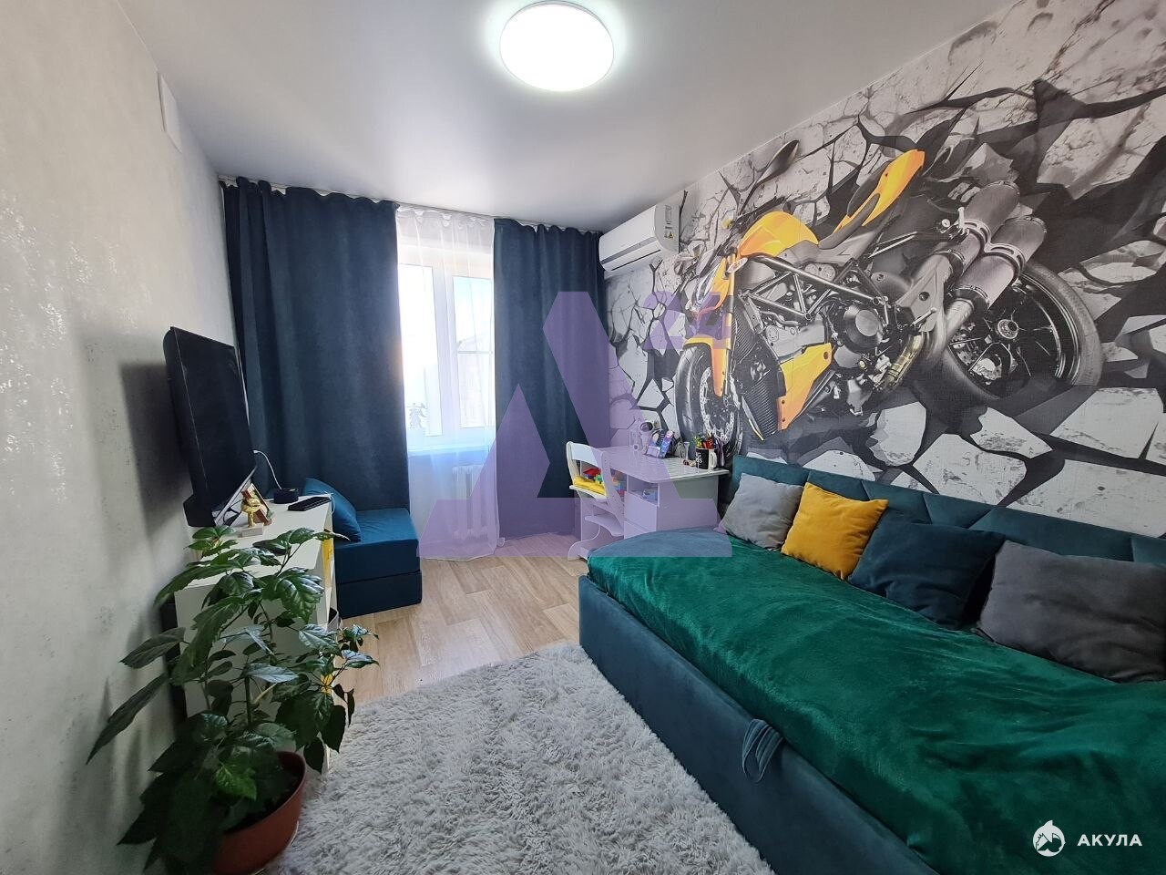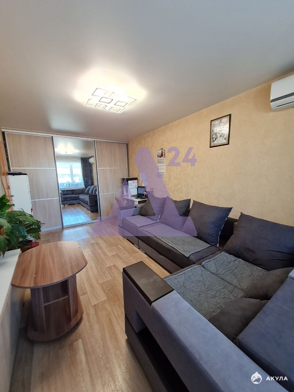 Отдельное преимущество — наполнение. В квартире уже остаётся кухонный гарнитур с варочной панелью и духовым шкафом, что избавляет от значительных затрат на обустройство кухни. В зале — диван и тумба под телевизор, предусмотрен встроенный шкаф для хранения. Дополнительно установлены два кондиционера и водонагреватель — комфорт в любое время года без дополнительных вложений.