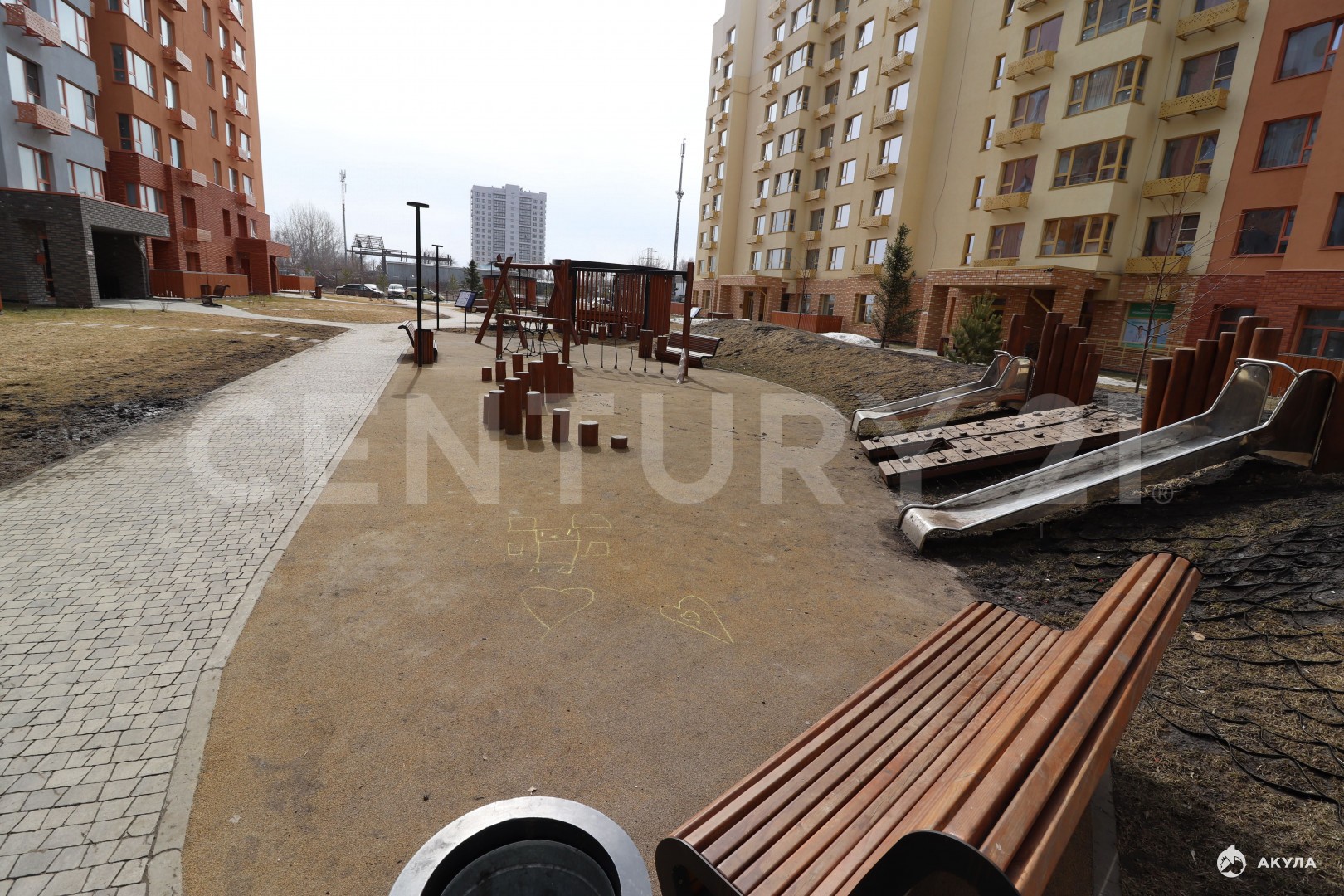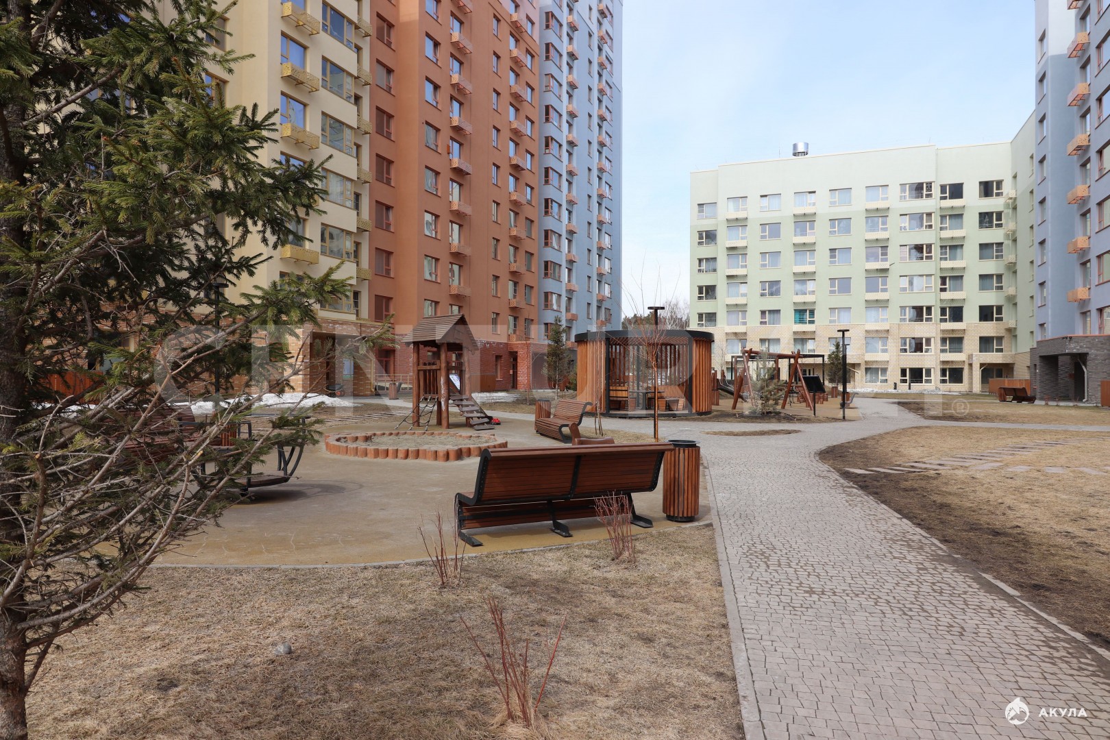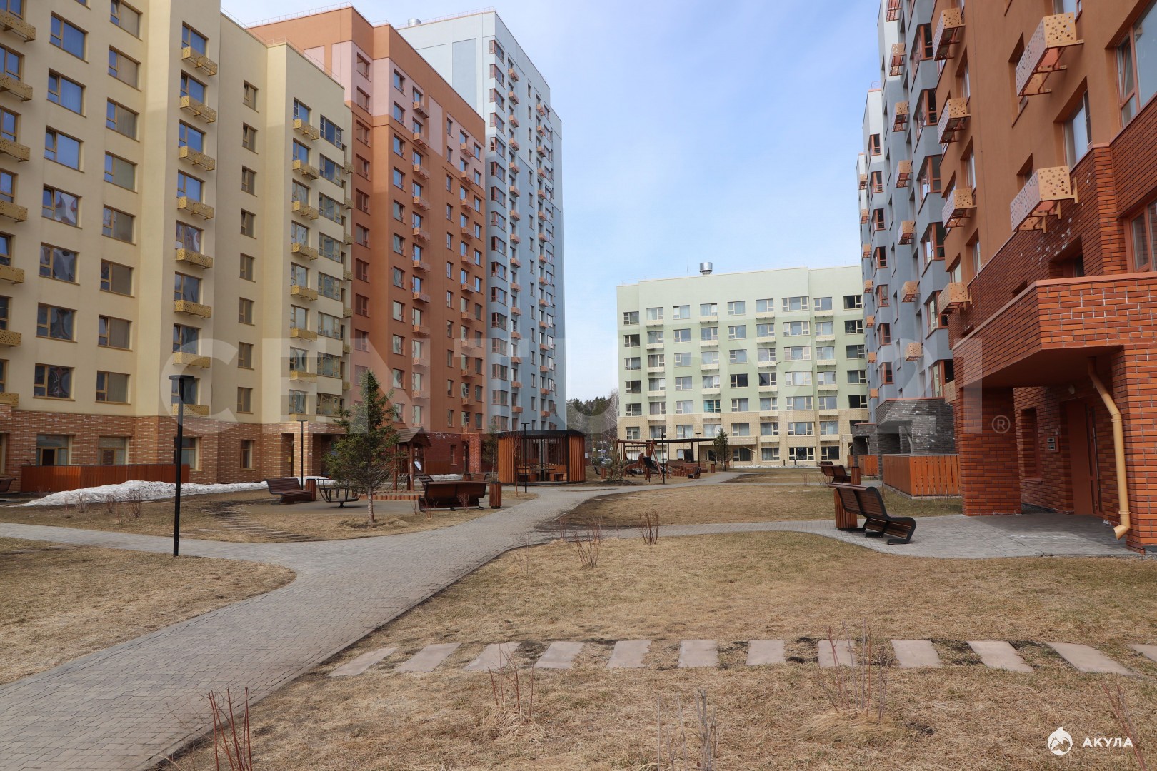 * Благоустроенный большой двор с детскими площадками
