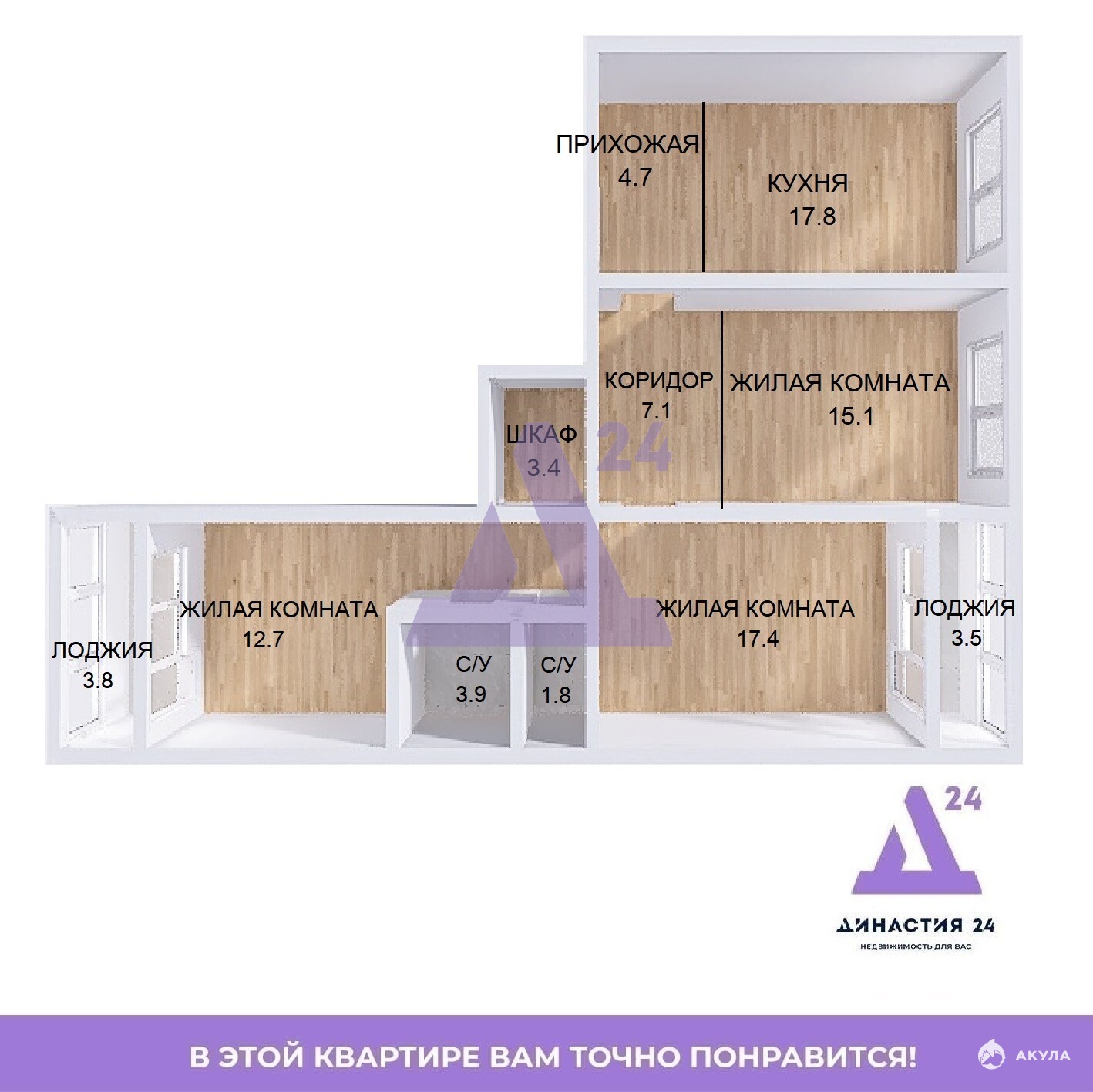 Планировка квартиры — это одно из ее главных достоинств. Просторные комнаты, удобная кухня 17, 8 квадратов, две лоджии, раздельный санузел и ниша под шкаф — все продумано до мелочей для Вашего удобства.