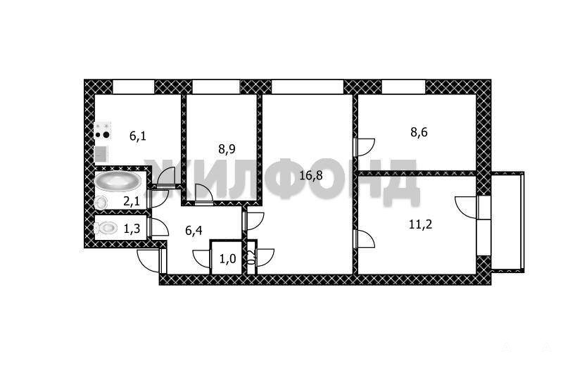 Общая площадь квартиры составляет 62, 6 квадратных метров, что позволит Вам и Вашей семье чувствовать себя комфортно и свободно.