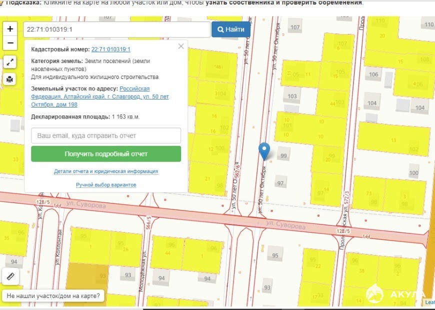 - Площадь участка